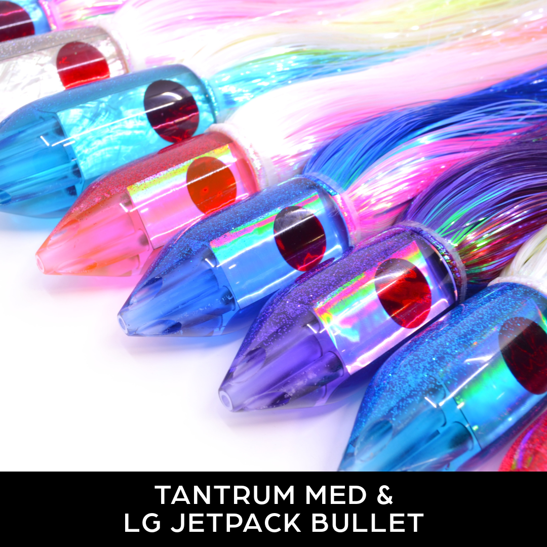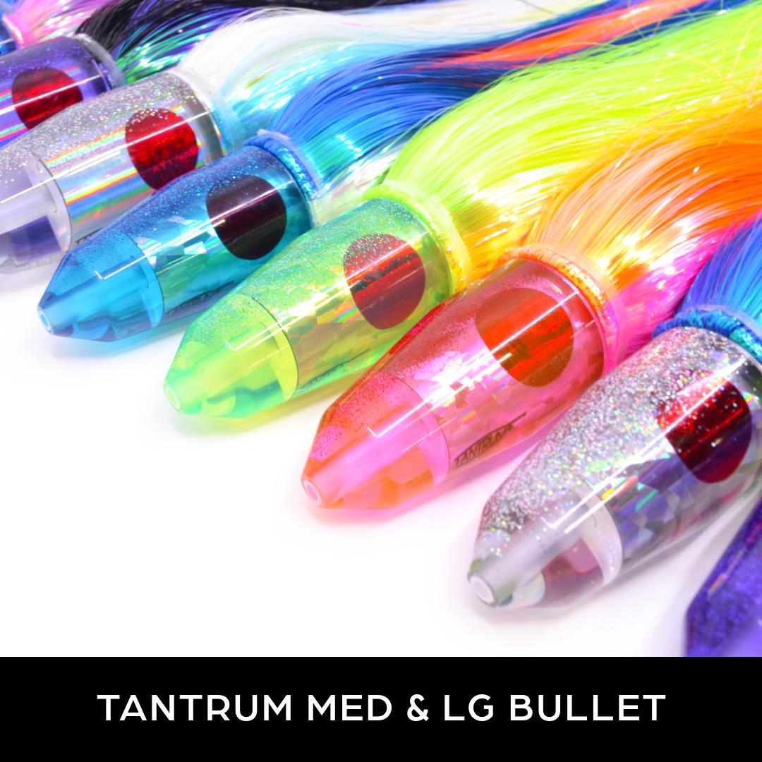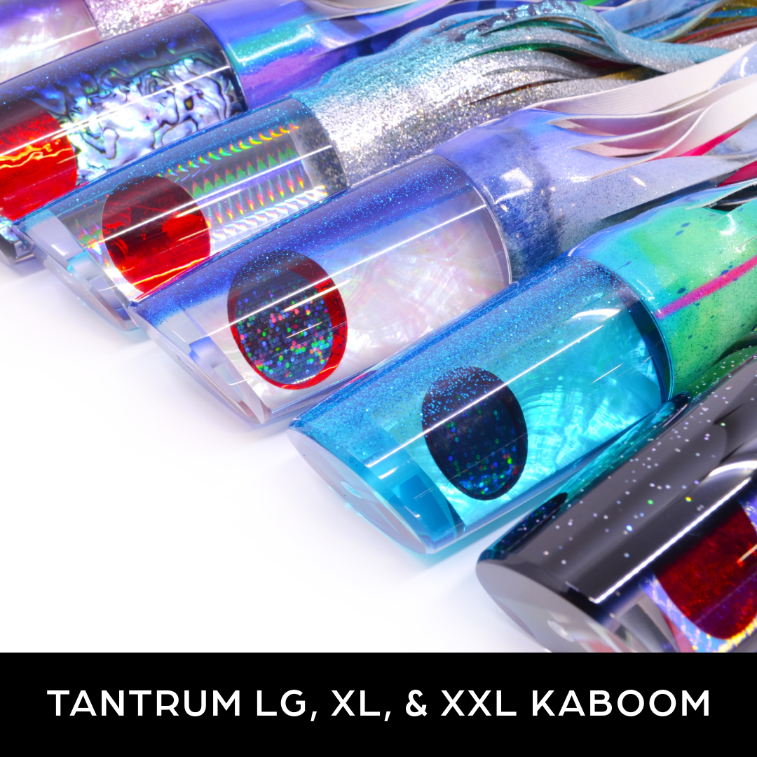View full detailsTANTRUM Lures Silver Rainbow Scale Blue Glitter Back Red Eyes XL Kaboom 14" 13oz Skirted