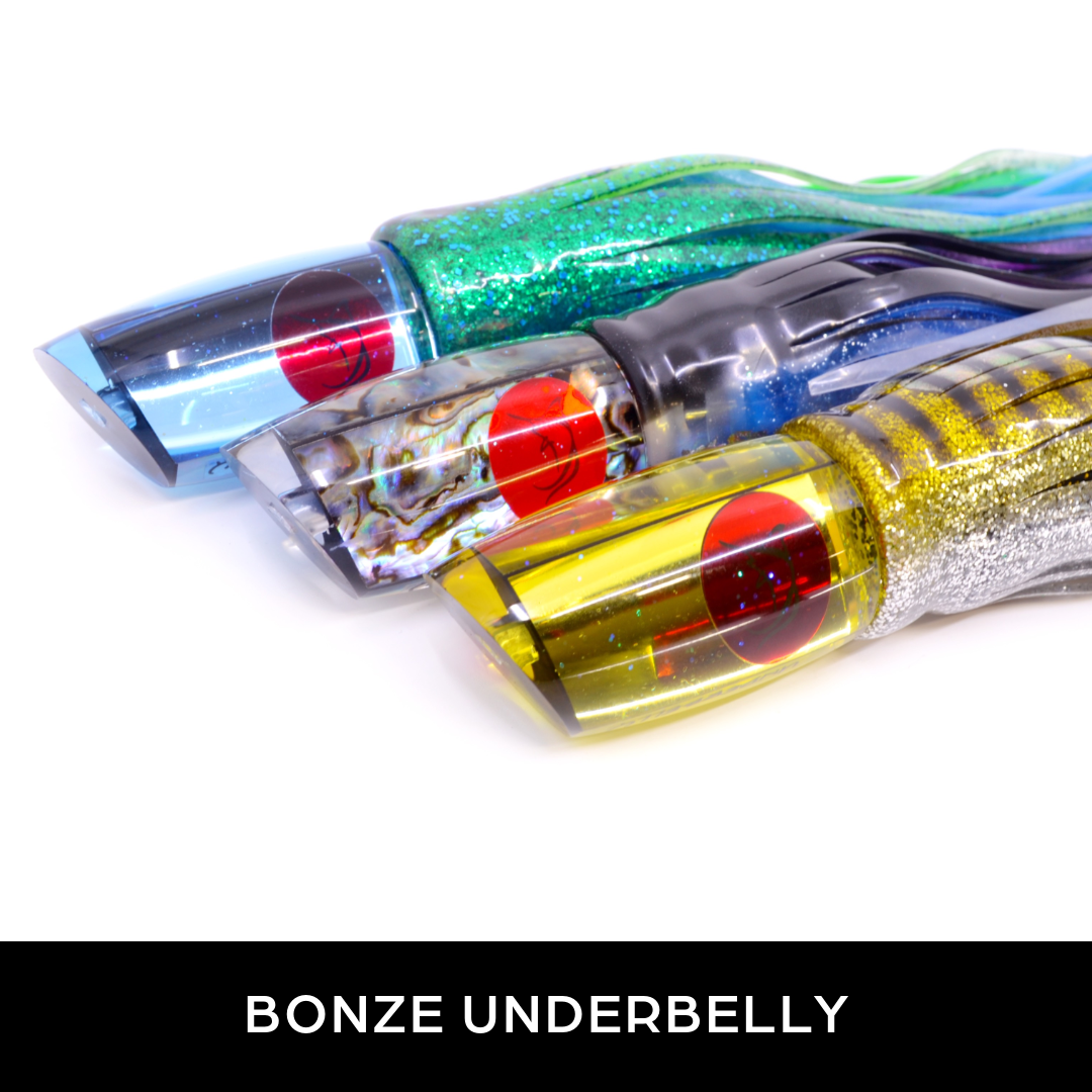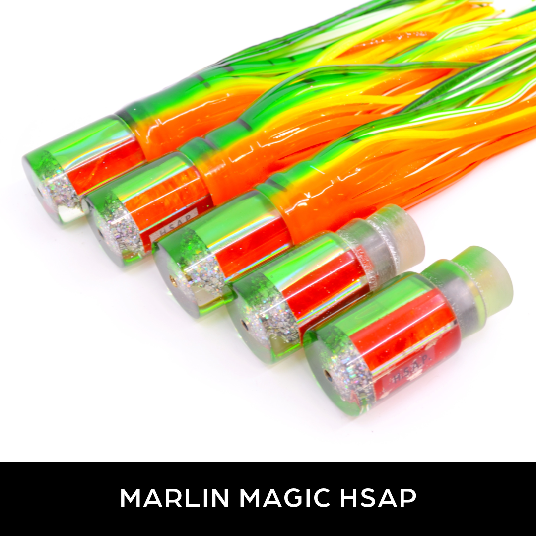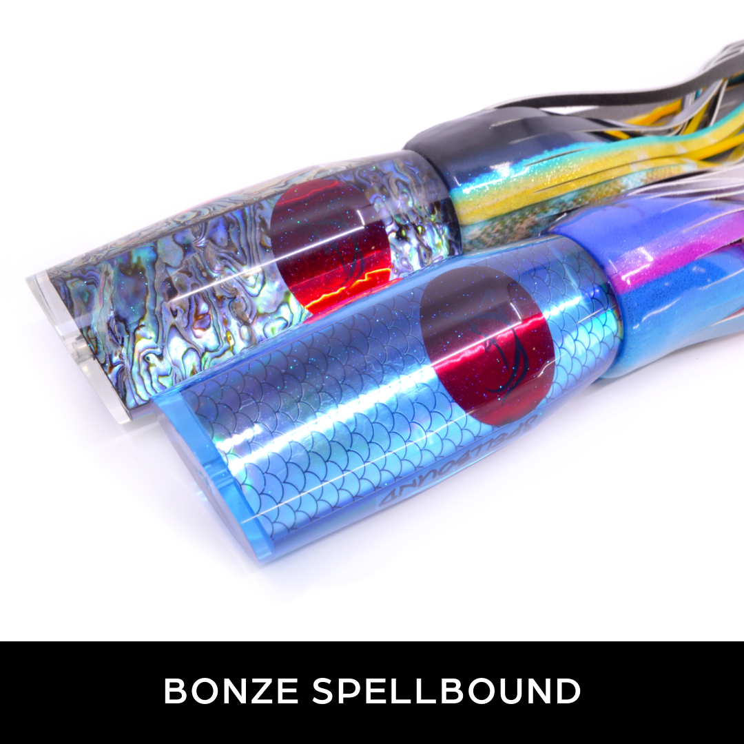 **Lure comes skirted as photographed. The Marlin Magic Teardrop Ahi Pussy (AP) Bullet has 7" sized skirt saddles and a reverse tapered, teardrop sh...