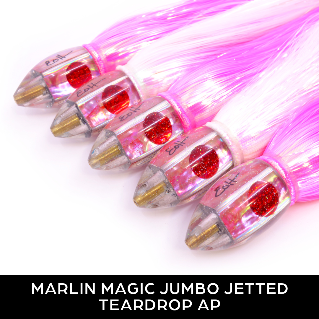 Marlin Magic Lures Pink Awabi Red Eyes Teardrop AP Bullet 7" 2.8oz Strobez Pink/White