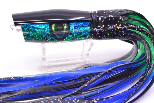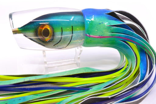 View full detailsMoyes Lures Green-Blue Oil Slick Blue Back Medium Pipe Bomb 12" 7.5oz Skirted