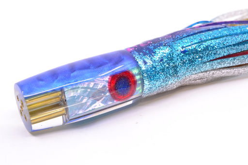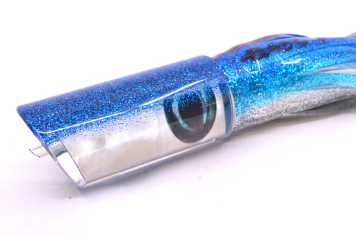 View full detailsMoyes Lures White MOP Blue Glitter Back Medium Pipe Bomb 12" 7.5oz Skirted Blue-Silver