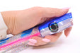 The brand new Small Dark-n-Stormy is the 9" version of the popular original Dark-n-Stormy and is brand new as of July 2025. We fully expect this to be a very hot lure in the coming years given the popularity and demand of the original version (now called the Large Dark-n-Stormy). The head design is a double tapered long and slender slanted nose bait. This is designed as an all-pelagic bait that will catch a variety of fish from Mahi to Tuna to Billfish. Similar size of lure to the other popular Moyes Small sized lures like the Small Plunger, Small J-Boy, etc.