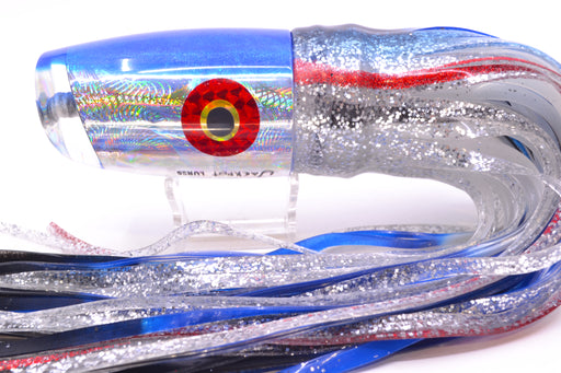 Jackpot Lures Silver Rainbow Swirl Blue Back Cameltoe 14" 10.7oz Skirted Blue & Black Bars