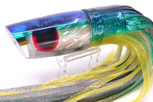 View full detailsCoggin Lures White MOP Blue-Yellow Back 4-Hole Kilauea Tado Slant 9" 4.2oz Skirted