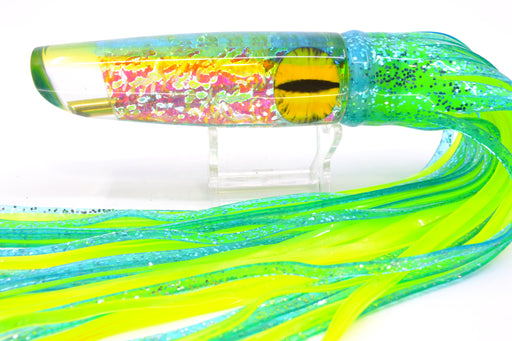 View full detailsCoggin Lures Ice Rainbow Dichro Green-Yellow Back Old Style Stick Swimmer 12" 8oz Skirted