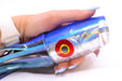This is the brand new Jackpot Lures Cameltoe, handmade by Del Wheaton out of Kona & Las Vegas. The Cameltoe is a story in and of itself - properly named by Capt. Momi Bean. It is a scoop faced lure with a unique, sharp divot on the bottom of the nose. It also incorporates weight chamber technology that can be adjusted on the fly when sea conditions vary. It’s a cool little concept that we think some of you rougher water guys will really dig especially. We’ve personally ran the lure ourselves and really were surprised with how well the lure stayed true without wandering off doing weird things. The lure is properly keeled to sit upright.