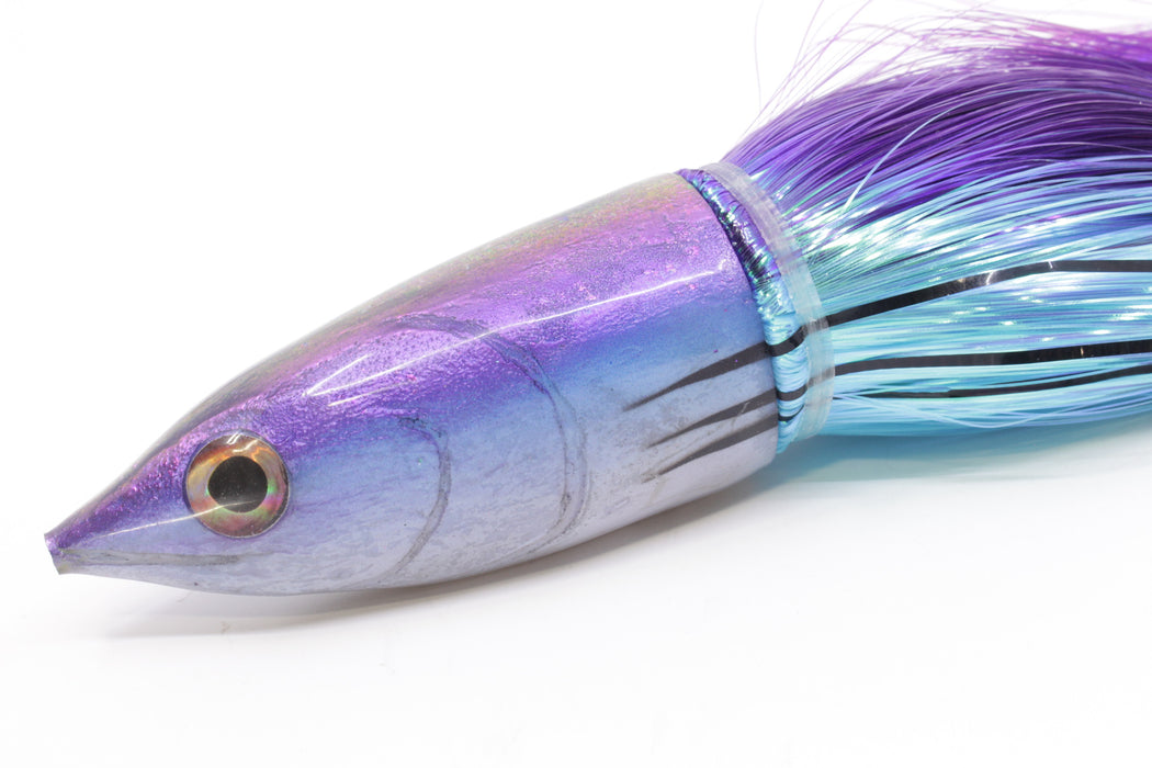 Ali'i Kai Lures Purple-Blue-White Aku STRIPES 12" 10.7oz Strobez Purple-Ice Blue