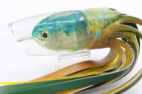 View full detailsMoyes Lures Mahi MOP Green Back Red Eyes Small Dark-N-Stormy 9" 4.5oz Skirted Mahi