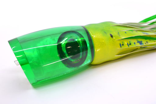 View full detailsMoyes Lures Chartreuse MOP Green Back Taxi Eyes Small Pipe Bomb 9" 4oz Skirted Mahi