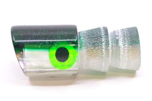 View full detailsCoggin Lures Real White MOP Green-Yellow Back Black-Red Eyes 4-Hole Hualalai Tado Invert 7" 3oz