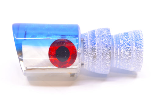 View full detailsCoggin Lures White MOP Blue-Red Back 4-Hole Hualalai Tado Invert 7" 3.5oz Skirted Blue-Silver