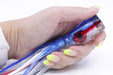 Coggin Lures White MOP Blue-Red Back 4-Hole Hualalai Tado Invert 7" 3.5oz Skirted Blue-Silver