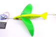 Hawaiian Malolo Bird Teasers are not your typical pelagic trolling attractor. These hand-crafted teasers are designed with life like shape and action, strength, agility, and stunning fish attracting colors in mind. Designed to constantly ride upright, fluttering side to side on the wings, we seldom see it dive underwater even in windy conditions. Long rigger or Stinger (Shotgun) positions are ideal. Leader length is a personal preference with some people using ~6’ (2m) but the Malolo Team having great success with ~12’ (4m). Any lure will work behind a Hawaiian Malolo Bird Teaser but when you factor in the best trolling positions, 6-9” skirted bullet head style lures are ideal. The bird provides more action and attractiveness to the straight running lures (easy to eat!) in the back of the lure pattern."