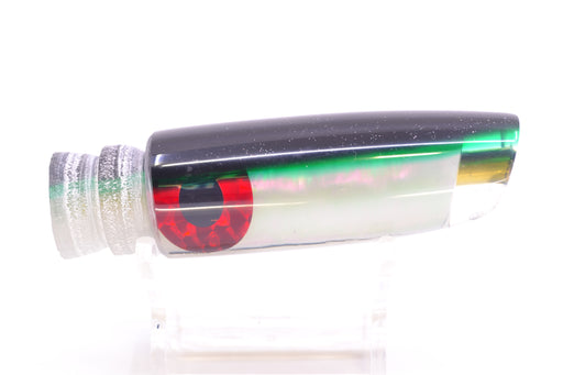View full detailsCoggin Lures White Pearl Glass Green Back Black-Red Eyes Da Bomb Bullet 9" 6.7oz