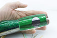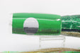 This particular head is from their "Custom" lineup with a green flashy rainbow-iridescent wrap covering the insert with a set of mirrored eyes. Skirted in green/silver with a black lateral line over bright green.