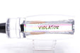 The Violator is a Heavy Tackle lure with 14" sized skirt saddles. The head shape is a large reverse tapered lure with a slightly scooped nose.