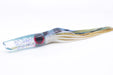 The Coggin Lures Old Style Stick Swimmer is one of Steve's larger swimmer heads with 12" sized skirt saddles and a long but slender head with a total head length of 4". The leader tube is offset towards the bottom of the nose and gives it a more aggressive action. These swimmers are very hard to find from Steve Coggin as he rarely makes these anymore. Very hard to find gems. These are best trolled at 6-7 knots. For higher speed trolling, you will want to run the lure on your Outrigger and set it way back in your spread - The additional line weight will keep it in the water better.