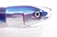 The Plunger is a great all-rounder with a nice easy running consistent action and great stability, with an ideal trolling speed of 7-10 knots in most sea conditions. Awesome lure on the long corner or long rigger, but runs great anywhere in the spread. The hole at the back of the lure head has been enlarged and acts as a hook lock. Just wrap some tape around the crimp and pull it into the hole locking the hook in position. Plungers run best when rigged with a single hook. They come in a 7" Small size, 9" Medium size & 12" Large size with fish head inserts.
