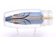 This particular lure is a gorgeous "Ballyhoo" fish head hand-painted by Jon Niiyama and inserted into one of Joe Yee's lures, the Super Plunger, handmade by Steven Kegley. Extremely gorgeous rare bait. Signed by Jon Niiyama with the Kegz label at the bottom of the insert.