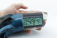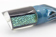 This particular head comes in Marlin Magic's Black Beauty style known as the "Black Magic" series with a black pearl insert and iridescent turquoise/green/akule Lava dichroic glass along the sides of the insert.