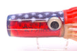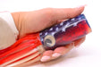 "To All of our friends, Soft Head fans and most importantly all of our loyal customers. It is with some reluctance and much emotion that I make this announcement. As most of you know my father Frank Sr. Passed away almost six years ago. At his Memorial service someone suggested that we create a “special” memorial lure for Dad. Well, here it is, the Frank Johnson memorial Wide Range. It is also appropriate as Frank was a proud American manufacturer. This lure has a number of very special features! Most obvious is the striking American flag motif. This color pattern was a corroboration with EvelynGore our general manager and her eldest son Anthony, who printed the masks for the star pattern with his computer printer. Evelyn came up with the rest of the patriotic color pattern. They also include a capsule of Billfish Juice™. An amino acid based fish attractant developed by Dr. Ben Diggles from Australia.