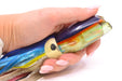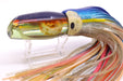 This particular head is made by Sonny Arita who has since passed. His baits are well known for their Opihi Shell eyes in particular. The head shape is a 10" skirt saddle sized reverse scooped face lure.