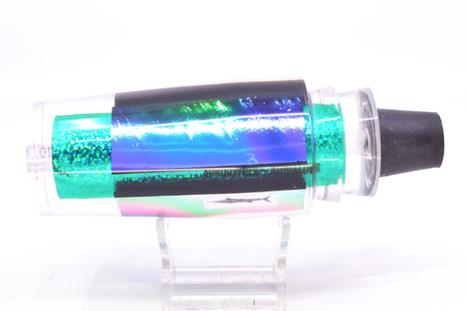 View full detailsMoyes Lures Green Rainbow Black Back Taxi Eyes Large Tang 9" 3oz Skirted Green Aurora