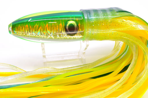 View full detailsMoyes Lures White MOP Green-Yellow Back Large Plunger 14" 11oz Fire Tailz Vinyl Mahi