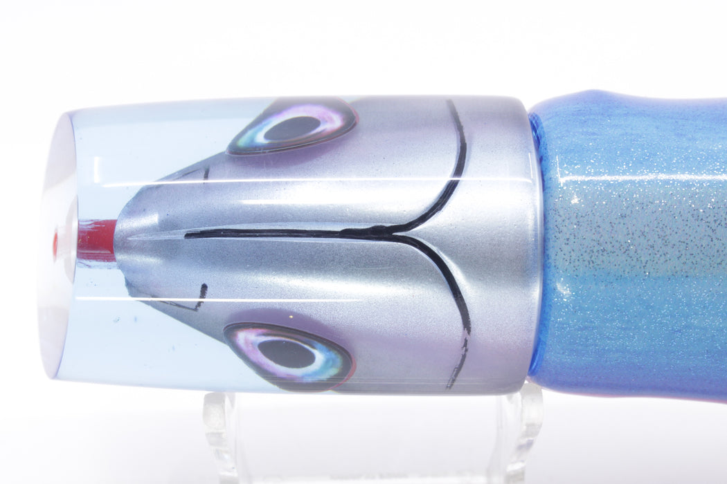 Aloha Lures Ice Blue Black Back "Scared $#!Tless" Baby Smash Bait 12" 9.5oz Fire Tailz Vinyl