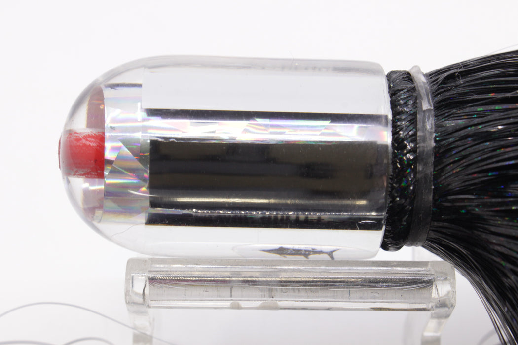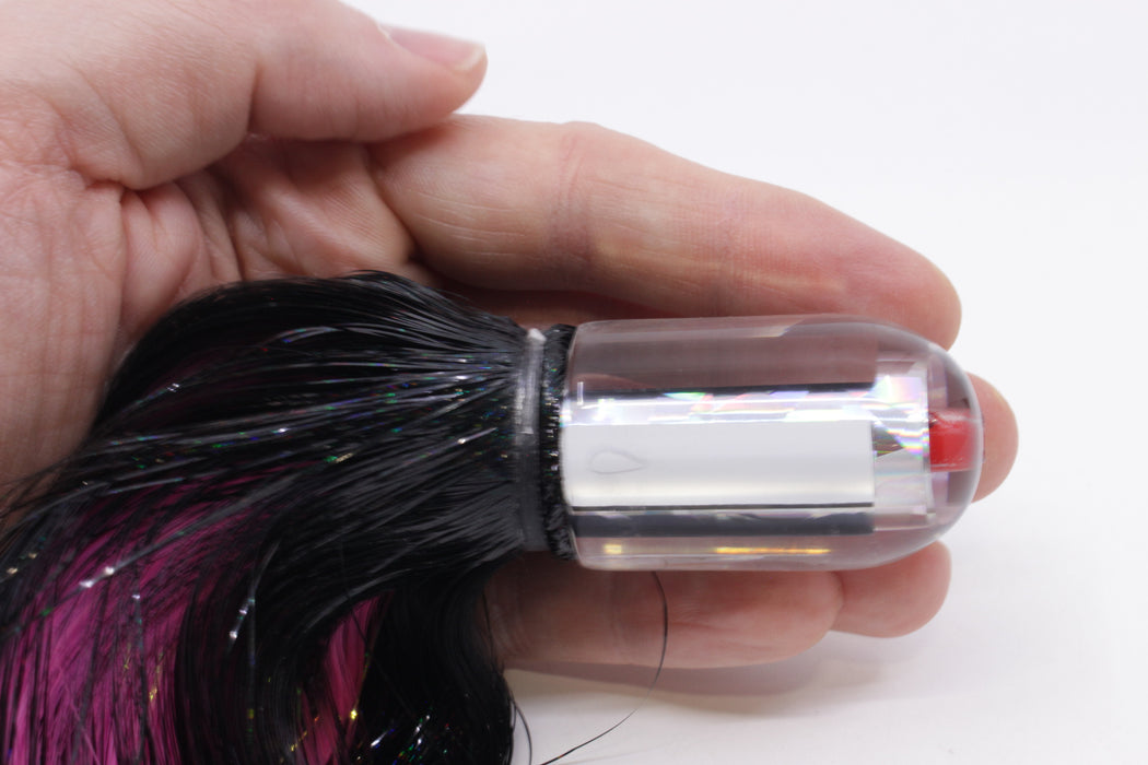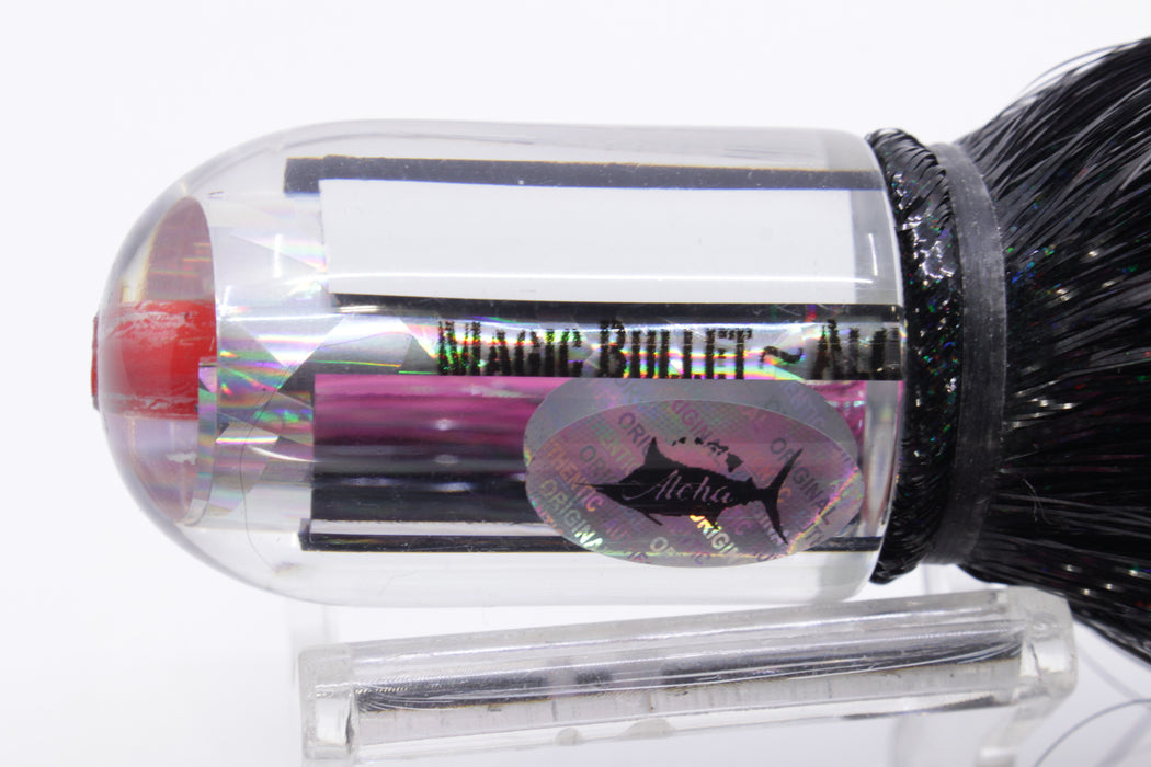 Aloha Lures Mirrored Silver Rainbow Flake Magic Bullet 9" 4oz Strobez Black/Pink