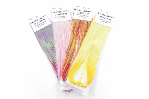 Dyed-Pearl Flashabou Magnum "The Big Fish Fiber" Replacement Skirts for Trolling Lures From the back of each pack: "TWICE AS WIDE... "Each fiber i...