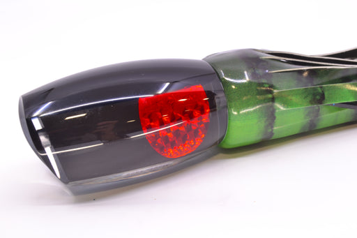 Moyes Lures Black Pearl Black Back Red Eyes 1305 16" 14oz Fire Tailz Vinyl Green Tiger GZE