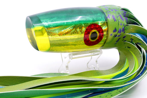Jackpot Lures Yellow Chrome Green Back Cameltoe 14" 10.6oz Fire Tailz Vinyl Mahi