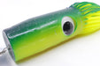 If you are familiar with the "Hard Head" shapes that lure makers such as Koya Lures & Marlin Magic offer, the "Hard Head" was derived off this original Wide Range - The main difference being that the Wide Range and other Mold Craft lures are in fact "soft heads" or made out of a rubber material vs. the typical resin materials used in trolling lures now. The head shape is basically a mostly flat and fairly slender lure shape, close to a Tube shape on the back and belly, but with a very slight forward taper. The nose is where the Wide Range really makes the difference in action with a mostly flat but slightly cupped nose. Some "Hard Head" designs that mimic this style of lure use both a flat nose or a cupped nose - This is almost in-between those two nose designs with almost a lip around the edge of the nose. The result is a magic lure that even in the most prominent lure fishing locations such as Kona still swear by this lure as one of the most reliable and consistent producers out there.
