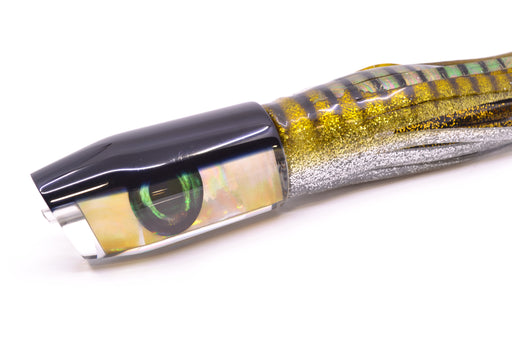 View full detailsMoyes Lures Mahi MOP Green Back Red Eyes Small Dark-N-Stormy 9" 4.5oz Skirted Mahi