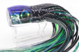 Moyes Lures Paua Shell Blue Back Taxi Eyes Large Tang 9" 3oz Skirted Black Aurora