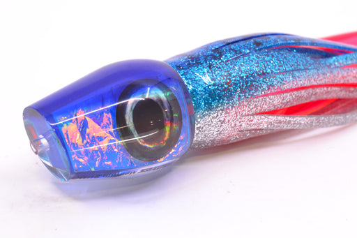Moyes Lures Clear Mirrored Blue Glittered Back Red Eyes Medium Sumo 12" 6.8oz Skirted