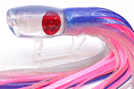 Moyes Lures White MOP Blue Glitter Back Small Argus 9" 3.5oz Skirted Blue-Silver/Pink