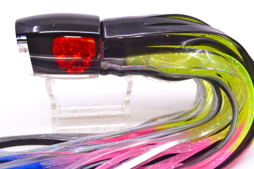 View full detailsMoyes Lures Rainbow MOP Black-Red Back Taxi Eyes Medium J-Boy 12" 7oz Skirted Black