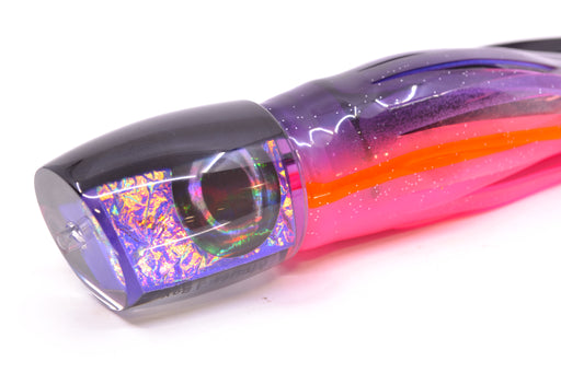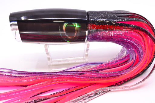 View full detailsMoyes Lures Pink-Purple Dichro Black Back Taxi Eyes Medium J-Boy 12" 7oz Skirted