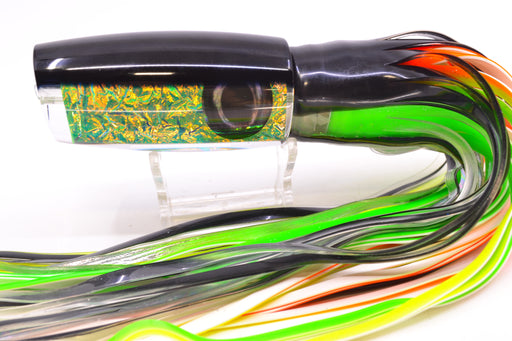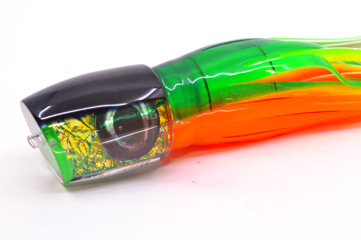 Moyes Lures Green-Orange Dichro Black Back Taxi Eyes Medium J-Boy 12" 7oz Skirted Guacamaya