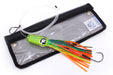 Pre-rigged on 12’ of 250lbs mono leader and stainless steel 9/0 single hookset."