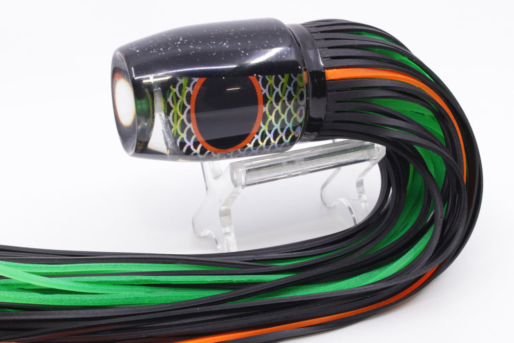Amaral Lures Black Pearl Rainbow Scale Green Stripes Blue Back Jararaca 12" 4oz