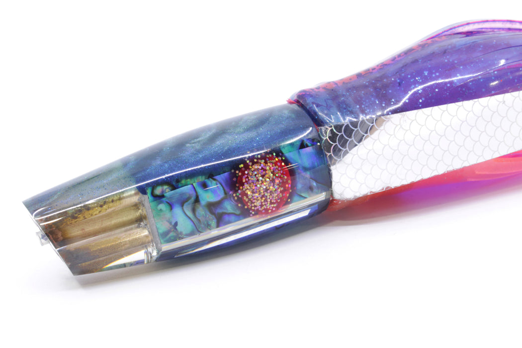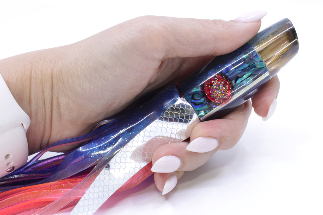The Big Reidee Lures Cut Face is a 9" skirt saddle sized head with a slight taper that straightens out a bit towards the slanted nose. Also contains 4 brass jets to help throw out extra smoke in the water. These lures are designed specifically to target a large variety of fish including Mahi Mahi/Dorado, Ahi Tuna, Ono/Wahoo, and Marlin and other Billfish. Any one of those species is a prime target for these lures.