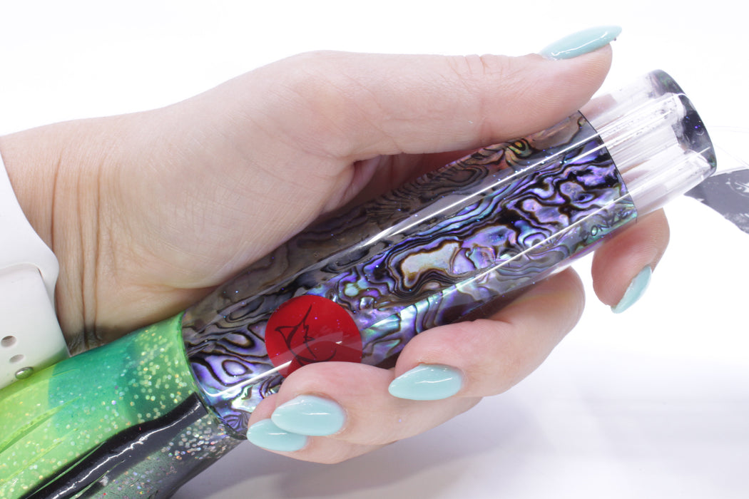 Bonze Lures Paua Shell 4-Hole Madmax Express 10" 9.5oz Skirted Chartreuse-Holo