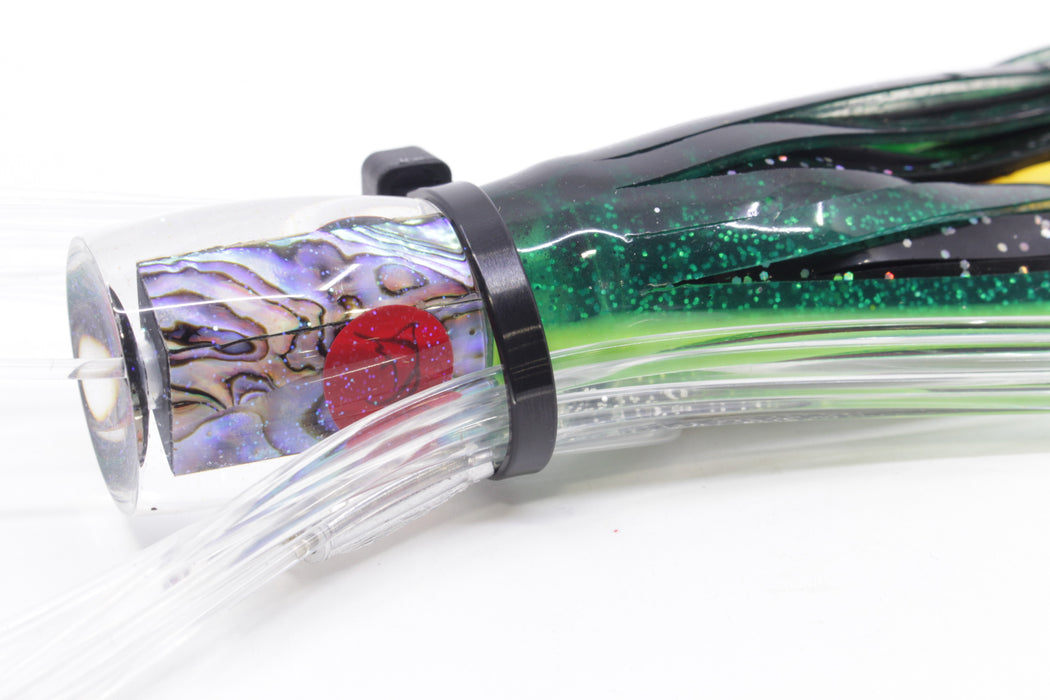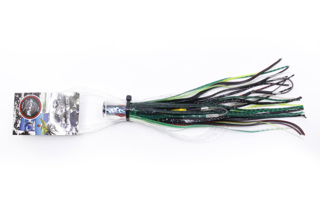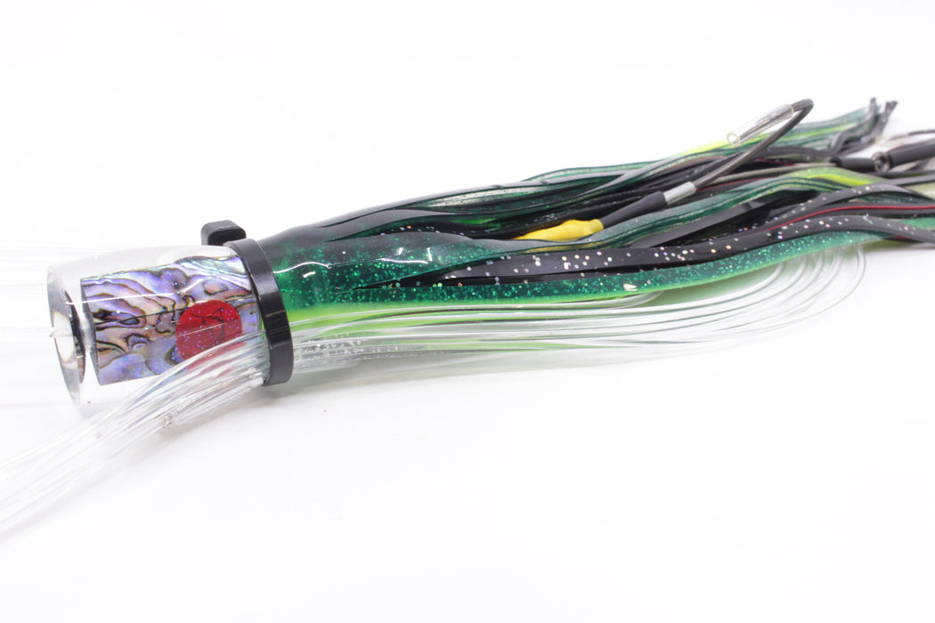 Bonze Lures Paua Shell Red Eyes #1 Rambo 7" 3oz Skirted Green-Black Dots Pre-Rigged