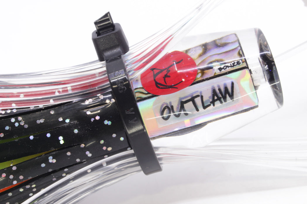 Bonze Lures Paua Shell Red Eyes #4 Outlaw 7" 3oz Skirted Black/Green Pre-Rigged