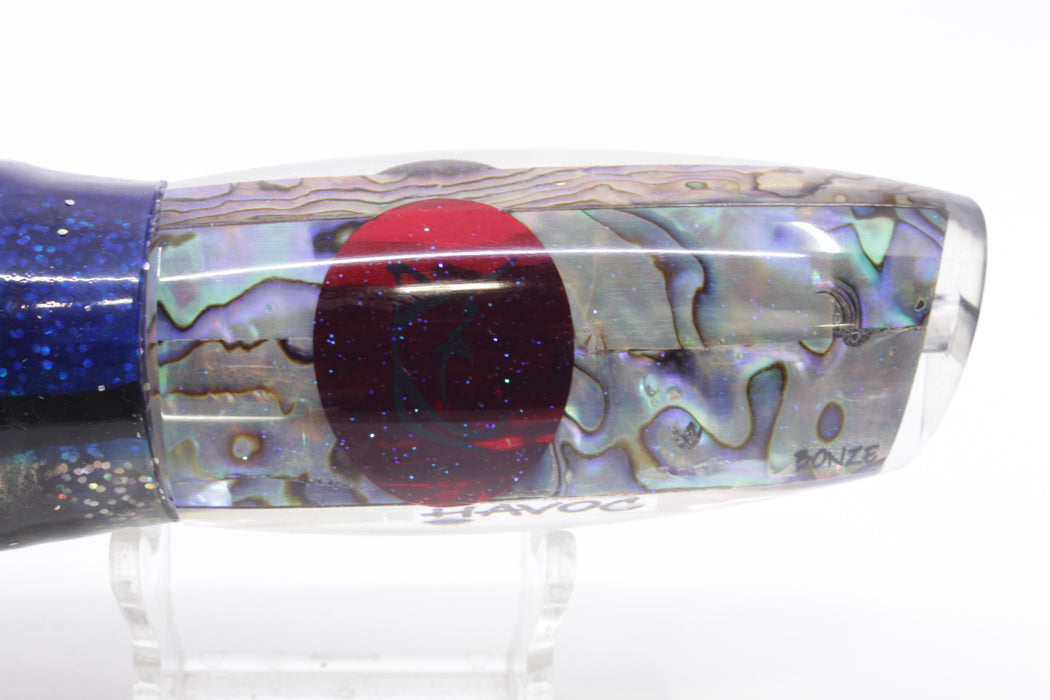 Bonze Lures Paua Shell Red Eyes Havoc 12" 8oz Skirted Blue-Holo with Black Bars