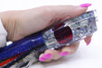 Top Skirt Pattern: Blue-Black Lateral Lines-Holographic Glitter with Black Bars