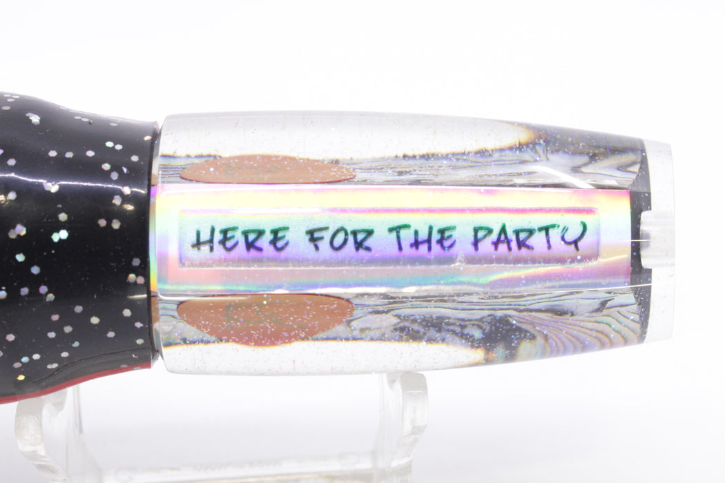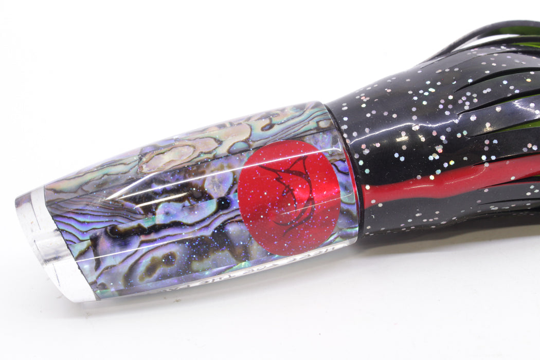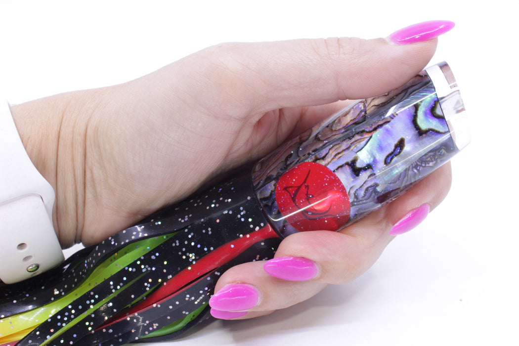 Bonze Lures Paua Shell Red Eyes Here For The Party 10" 8oz Skirted Black/Rainbow